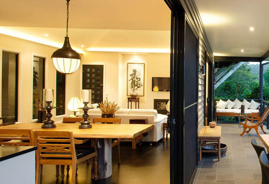 The large glass doors lead out to the spacious deck furnished for outdoor living with a day bed, wrought iron dining setting and BBQ.