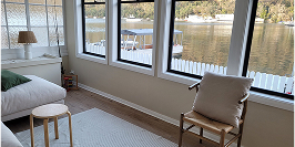 A charming two-bedroom cottage located right on the water, with spacious queen beds in both rooms. Offers a private pontoon for swimming, fishing, and launching kayaks.